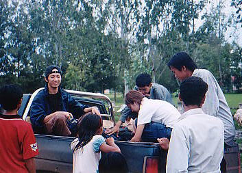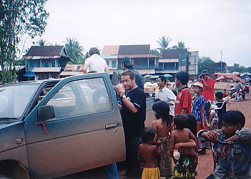 | ・途中の村 これがピックアップトラック | ・静岡大のM君は現地の少女の人気者 |