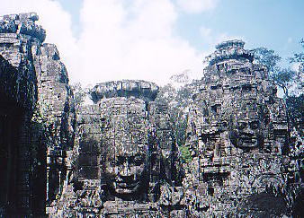 | Bayon(バイヨン)・・・アンコール・トム(大きな町という意味らしい)の中央に所在する寺院。 四面仏の微笑。 中を訪れるとそこは一大絵巻のレリーフの数々がありました。(残念ながらレリーフは未撮影) | |
