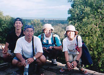 | プノン・バケン山から見たアンコール・ワット | 4人で記念写真・・・親父が子供を連れているみたいだね(笑) |