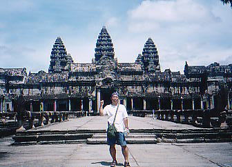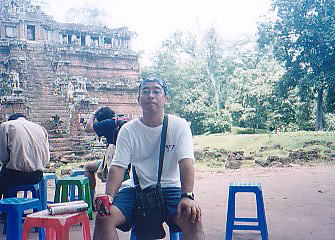 | 僕のバイタクを担当したGHの長男さんとちょっと休憩 | 南側から見たアンコール・ワット |