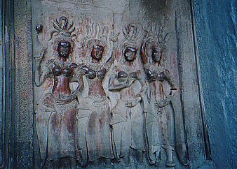 | 短足がミエミエだな | 回廊にはこのような見事なレリーフが・・・ |